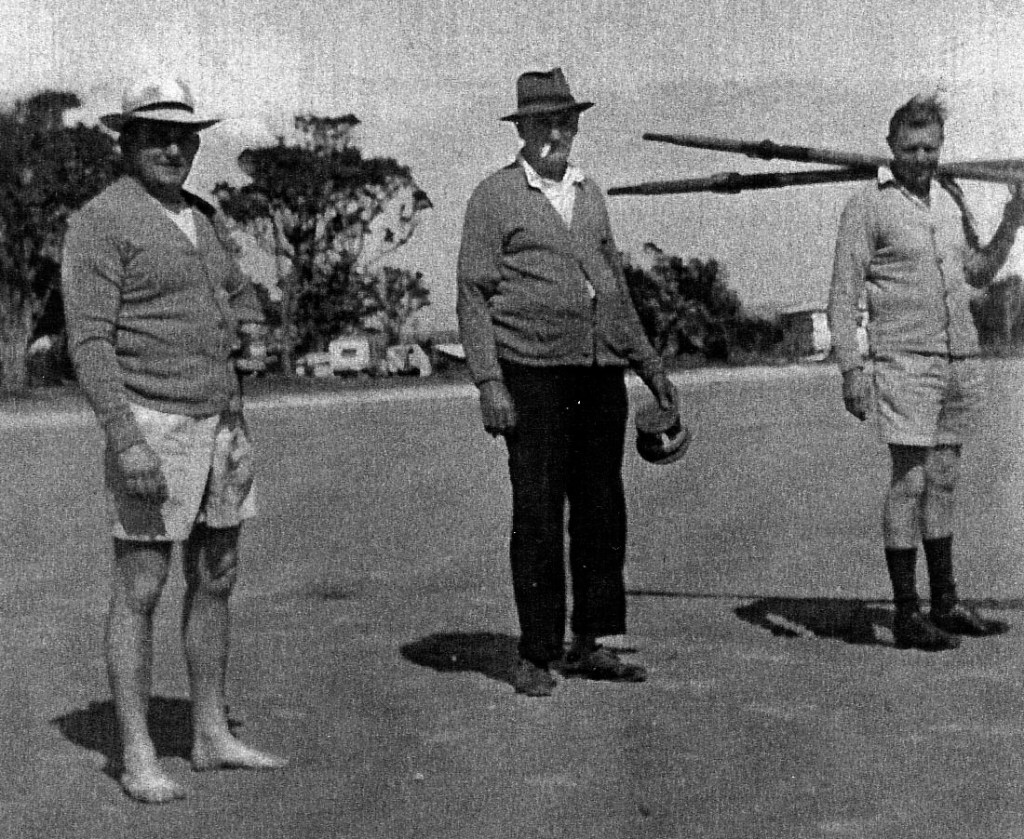 Clarrie with sons-in-law Tom Wade and Keith Orr at Brunswick Heads, 1951
